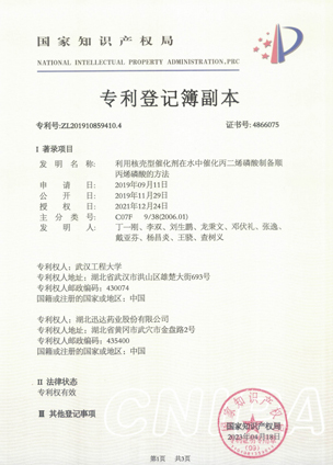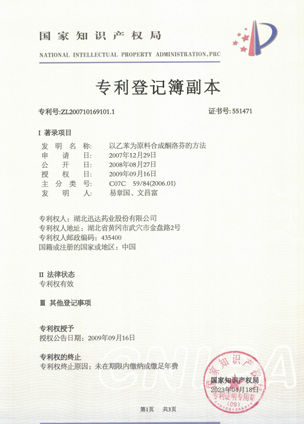 公司擁有一支高素質(zhì)科研隊伍,具備專業(yè)而高效的研發(fā)能力。近幾年,共取得科技成果30項,其中9項獲國家發(fā)明專利,2項獲湖北省科技進步獎,開發(fā)新產(chǎn)品8個,綠色合成、手性合成和催化等技術(shù)引領(lǐng)行業(yè)發(fā)展。主要銷往歐美、日本、韓國、中東、印度等40多個國家和地區(qū)。